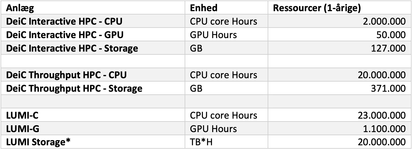 If you are a researcher at SDU you can also apply for the local SDU HPC resources. Find out how to apply here. NB: if you need more than 50.000 CPU-hours, 5000 GPU-hours and/or 50TB of data from the local SDU pool of resources, a requirement is that the same application has been submitted to the national DeiC call.